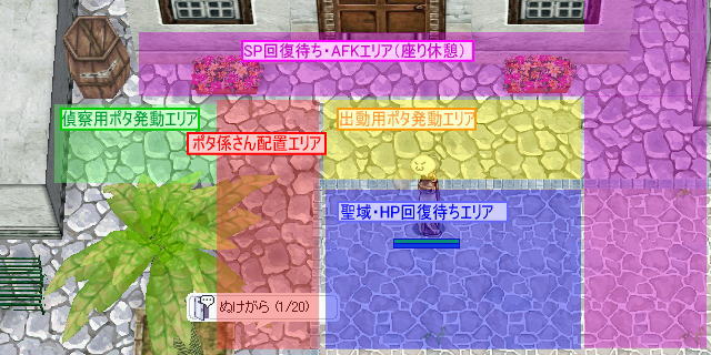 かねてより同盟内会議で連絡のとおり、現状で同盟資金に赤字が続いています。慢性的な赤字累積の防止のため、職により可能であるならば、カプラ倉庫が出現地点のすぐ脇にありますので、スリムから名声白POTに変更するなど各自で工夫をお願いします。(所持重量の少ない職にまで強要するものではありません)